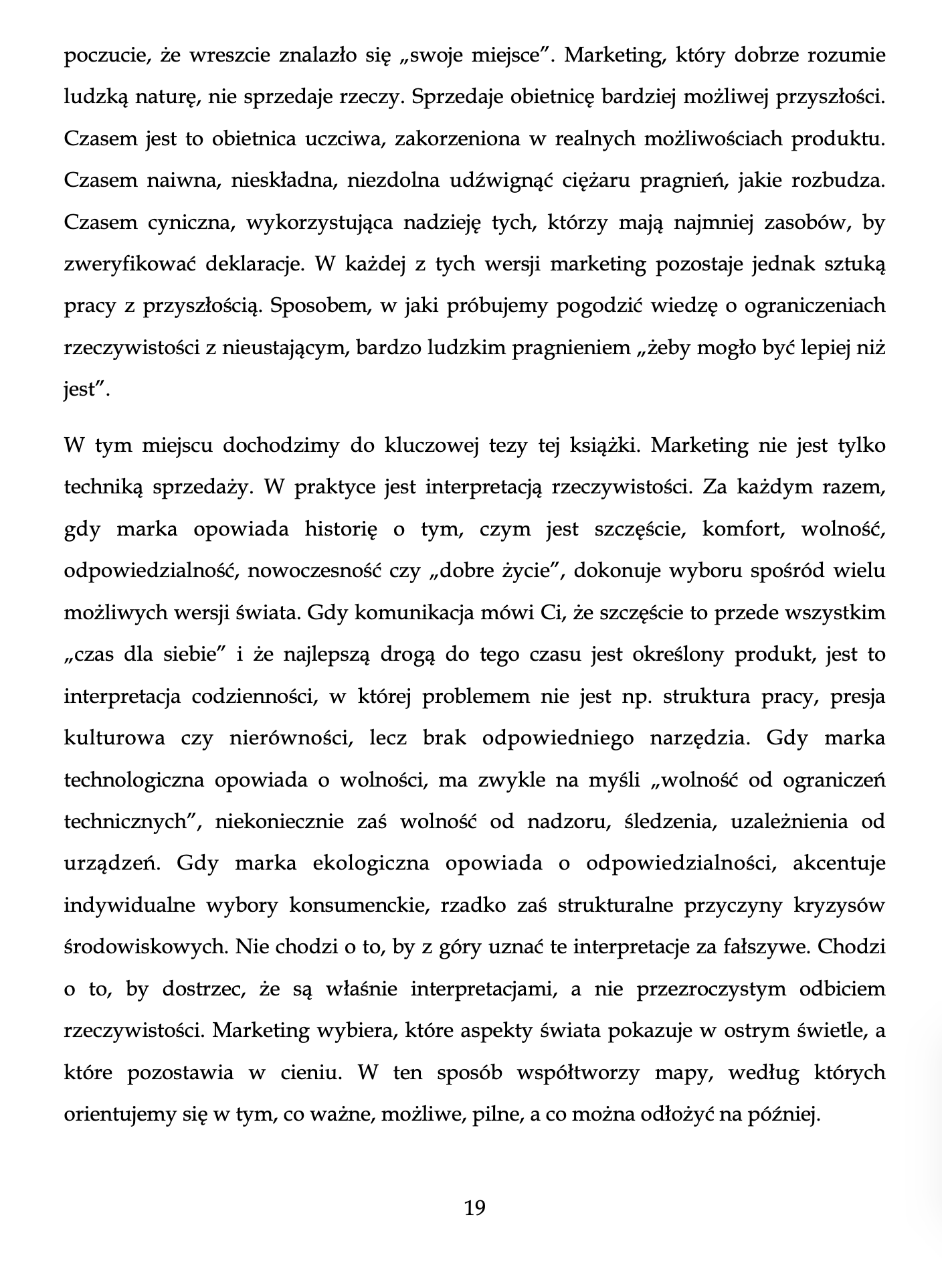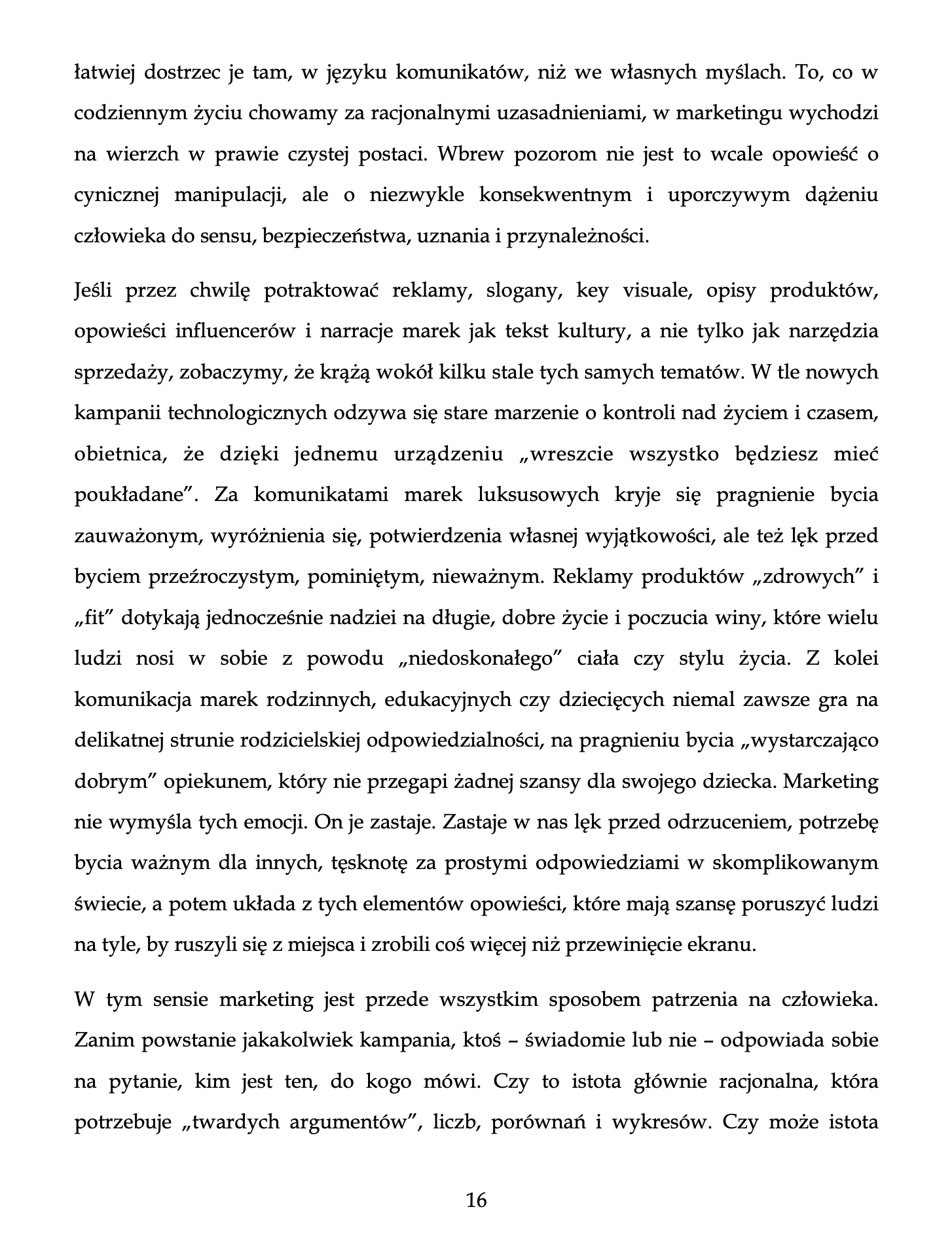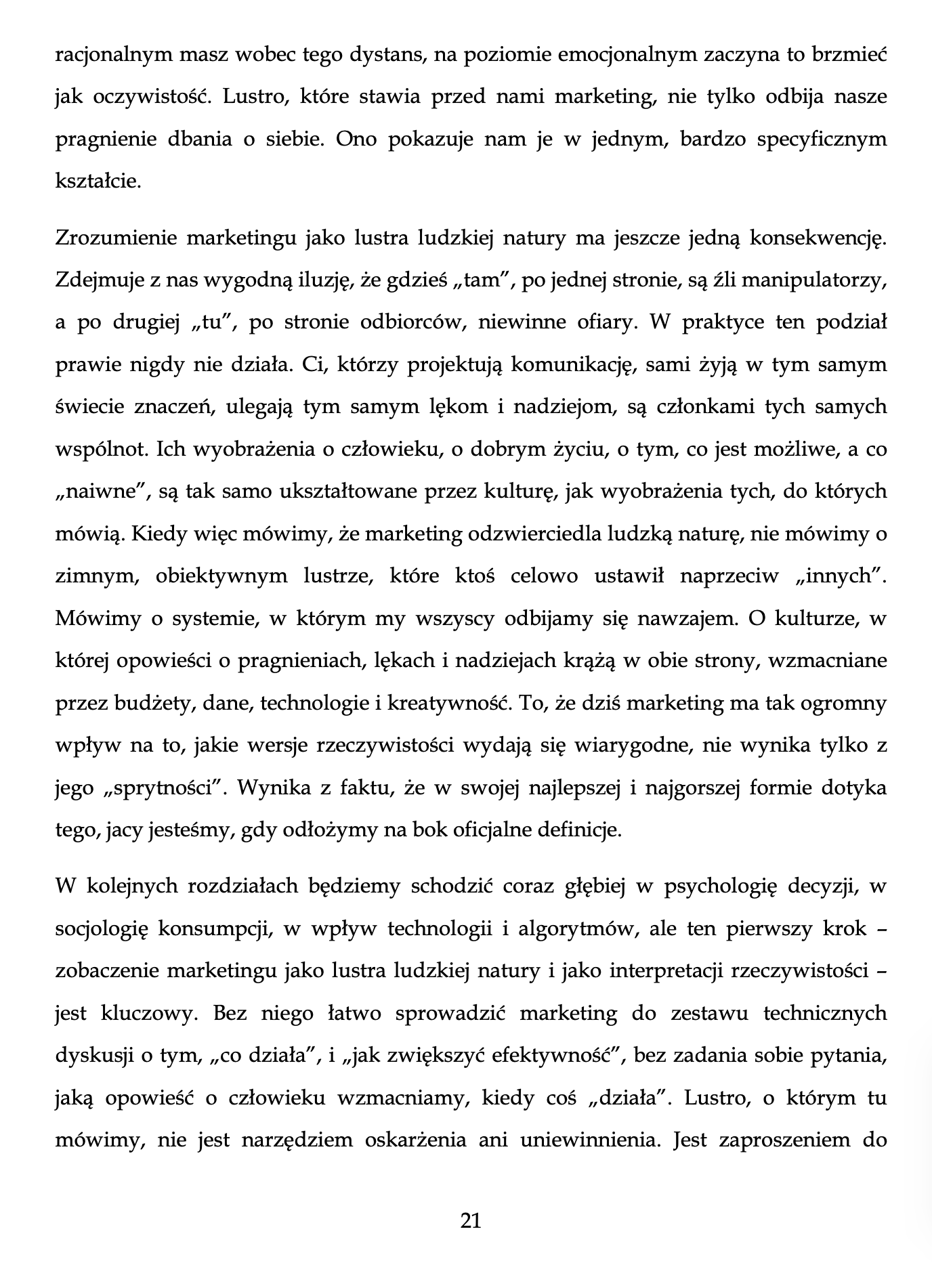 To książka, która nie tylko uczy lepiej „robić marketing”. Uczy przede wszystkim lepiej myśleć o marketingu, o ludziach i o świecie, który współtworzymy każdą kampanią, kreacją, tekstem i decyzją mediową.