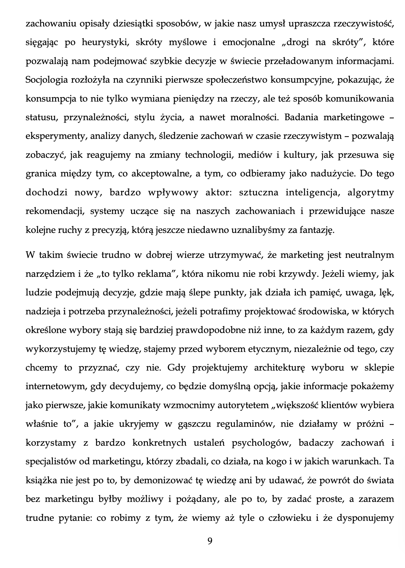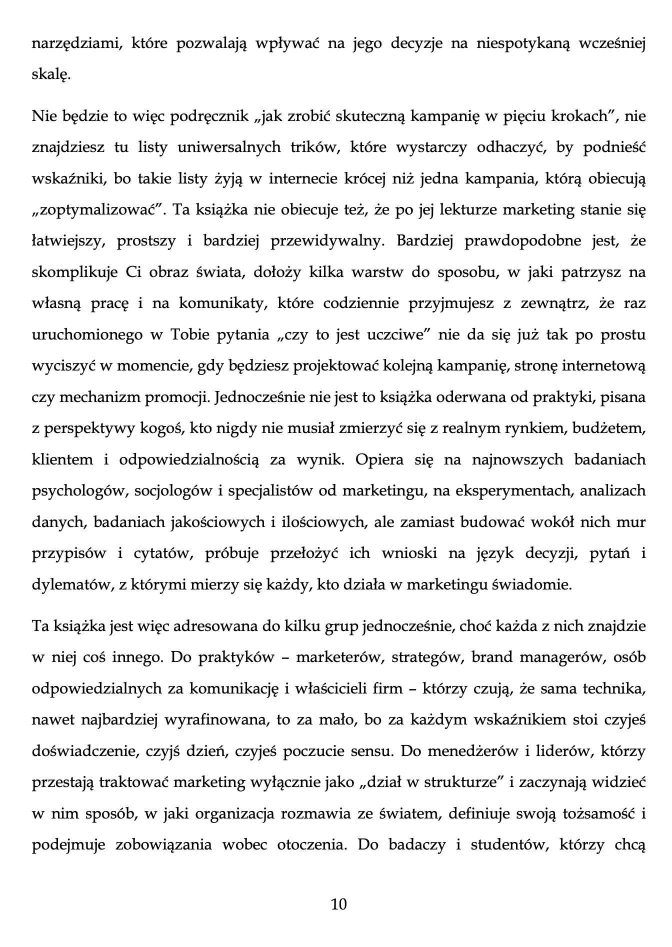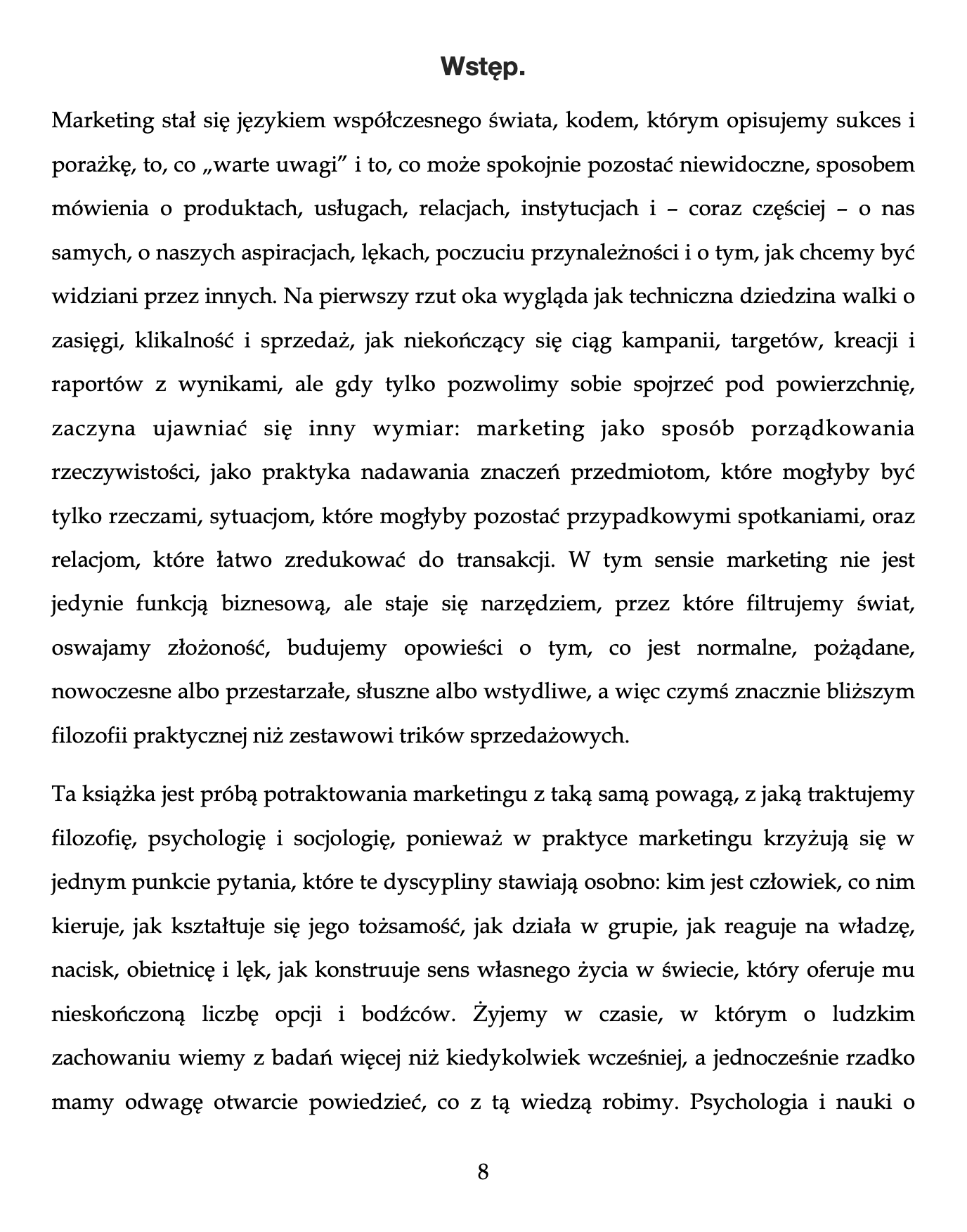 To książka, która nie tylko uczy lepiej „robić marketing”. Uczy przede wszystkim lepiej myśleć o marketingu, o ludziach i o świecie, który współtworzymy każdą kampanią, kreacją, tekstem i decyzją mediową.