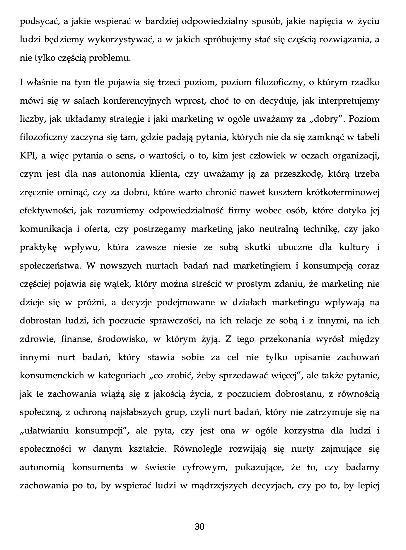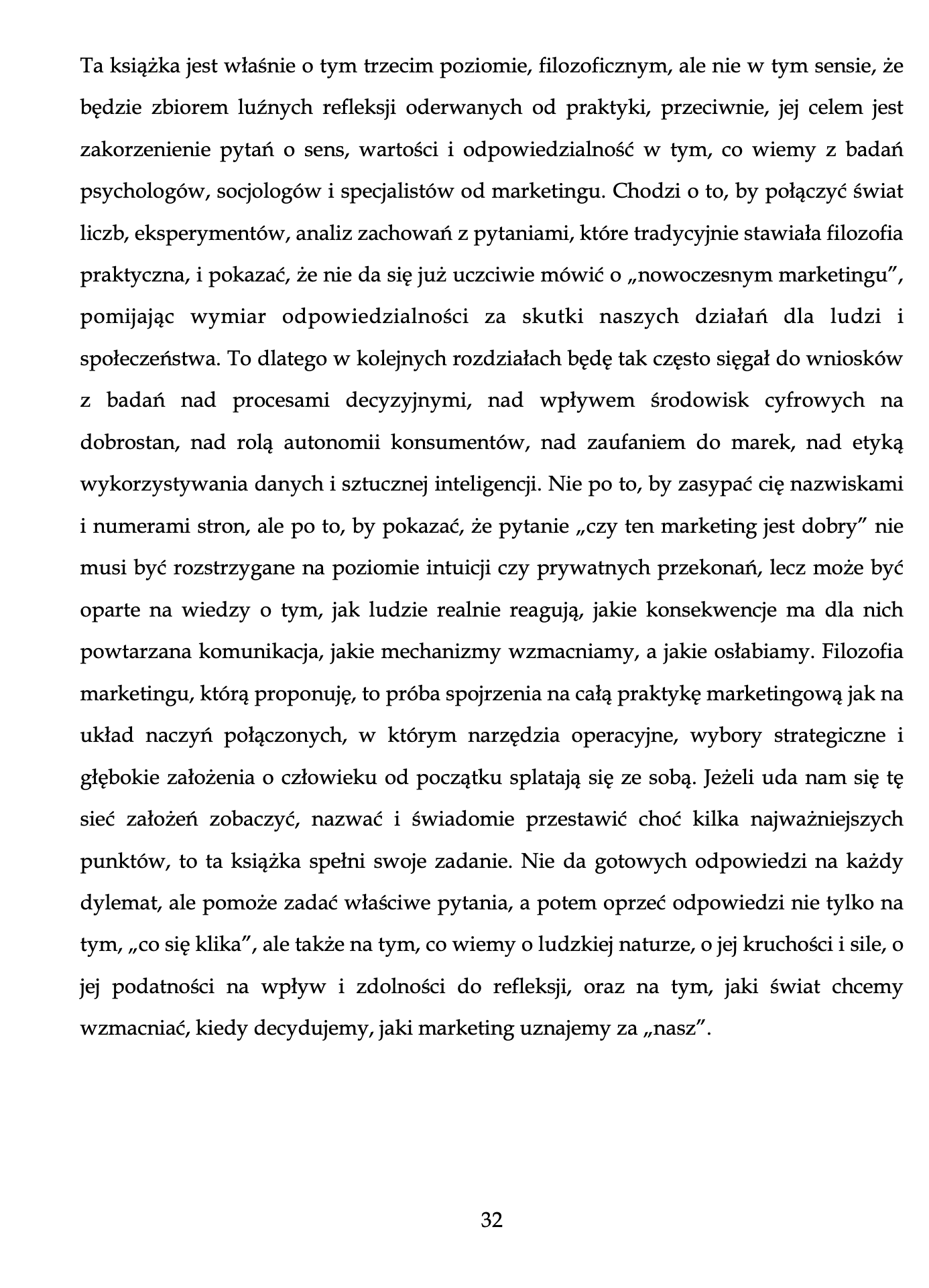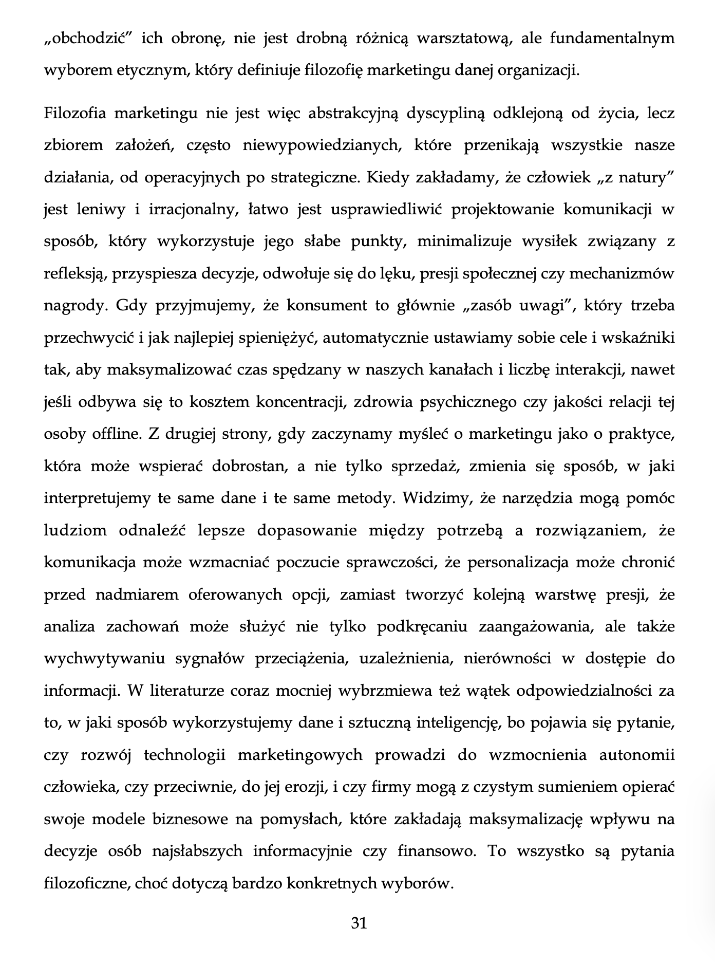 Łączy perspektywę praktyka marketingu z refleksją filozoficzną, psychologiczną i socjologiczną.