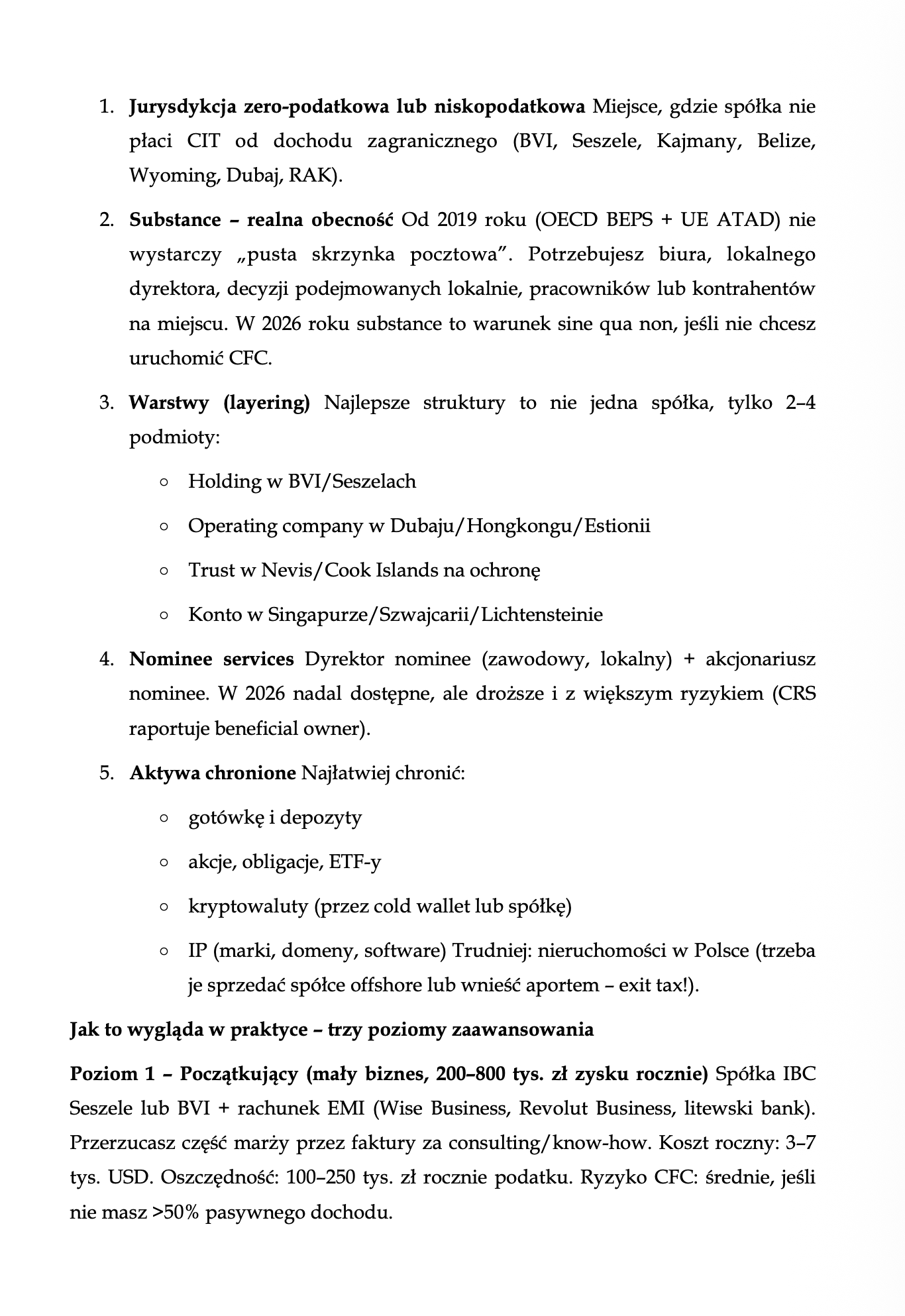 - Konkretne metody przenoszenia polskich nieruchomości, IP, portfela akcji i kryptowalut tak, żeby zniknęły z polskiego rejestru