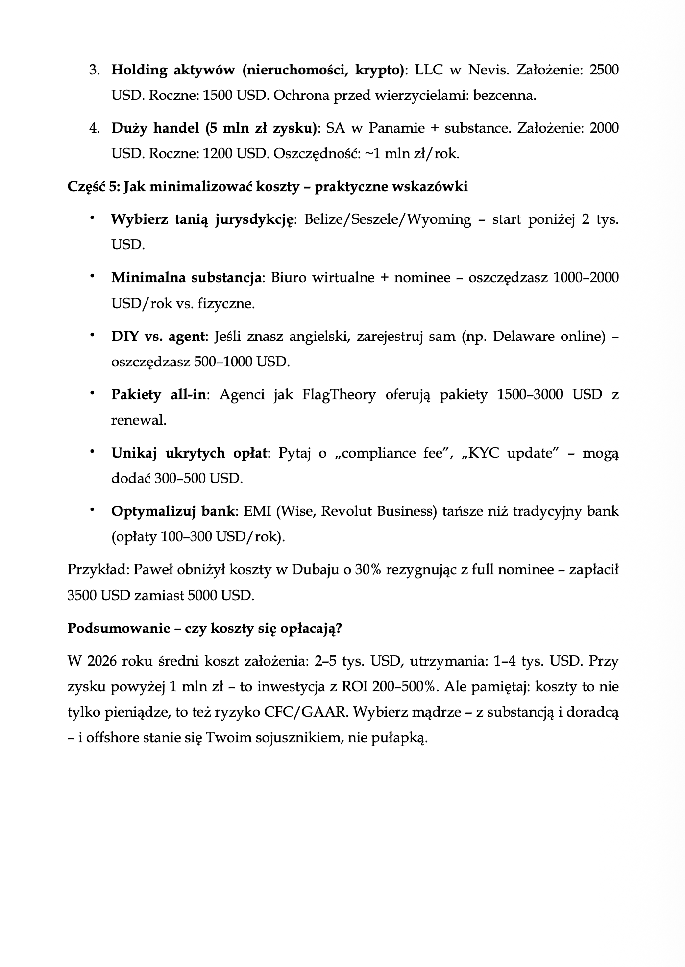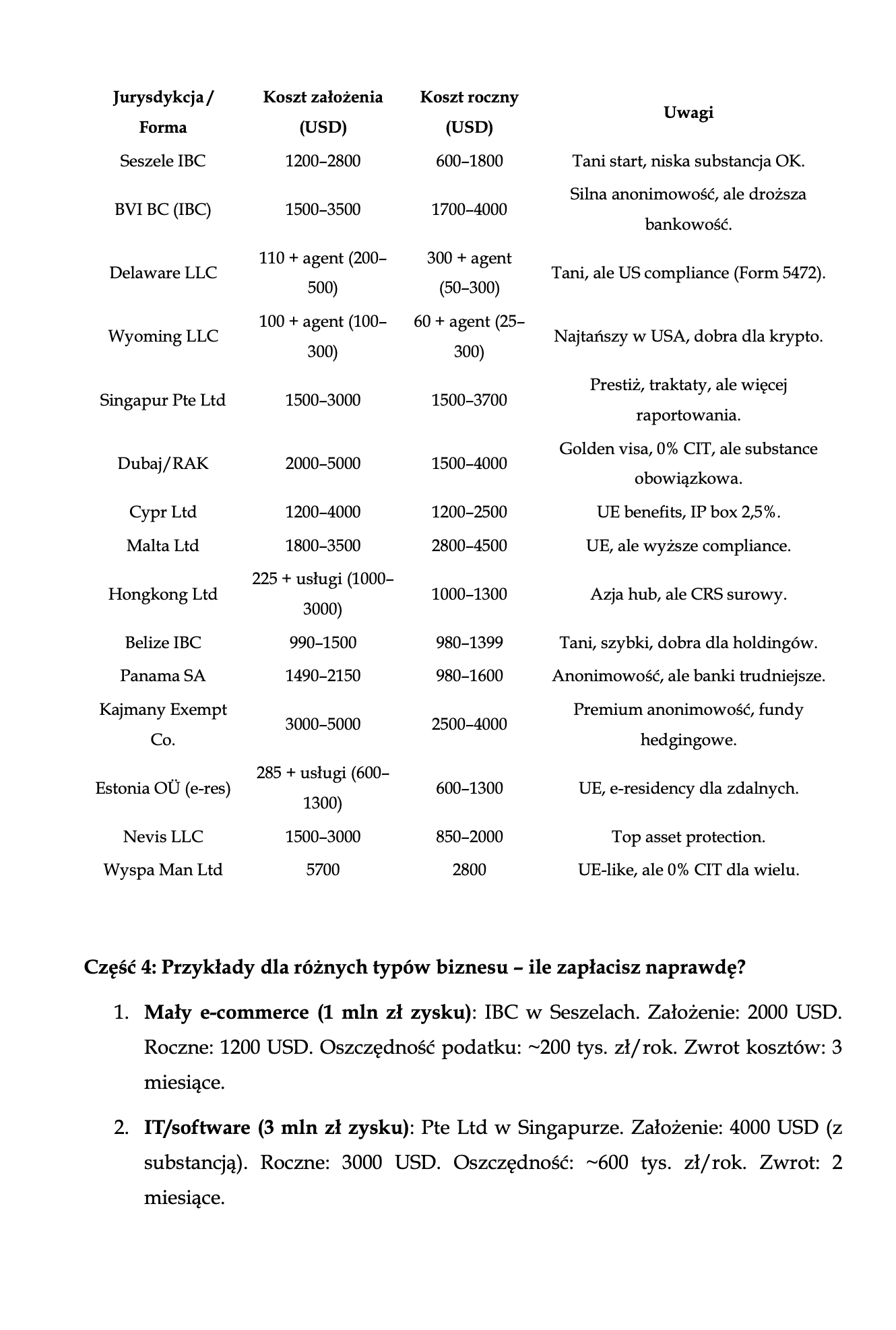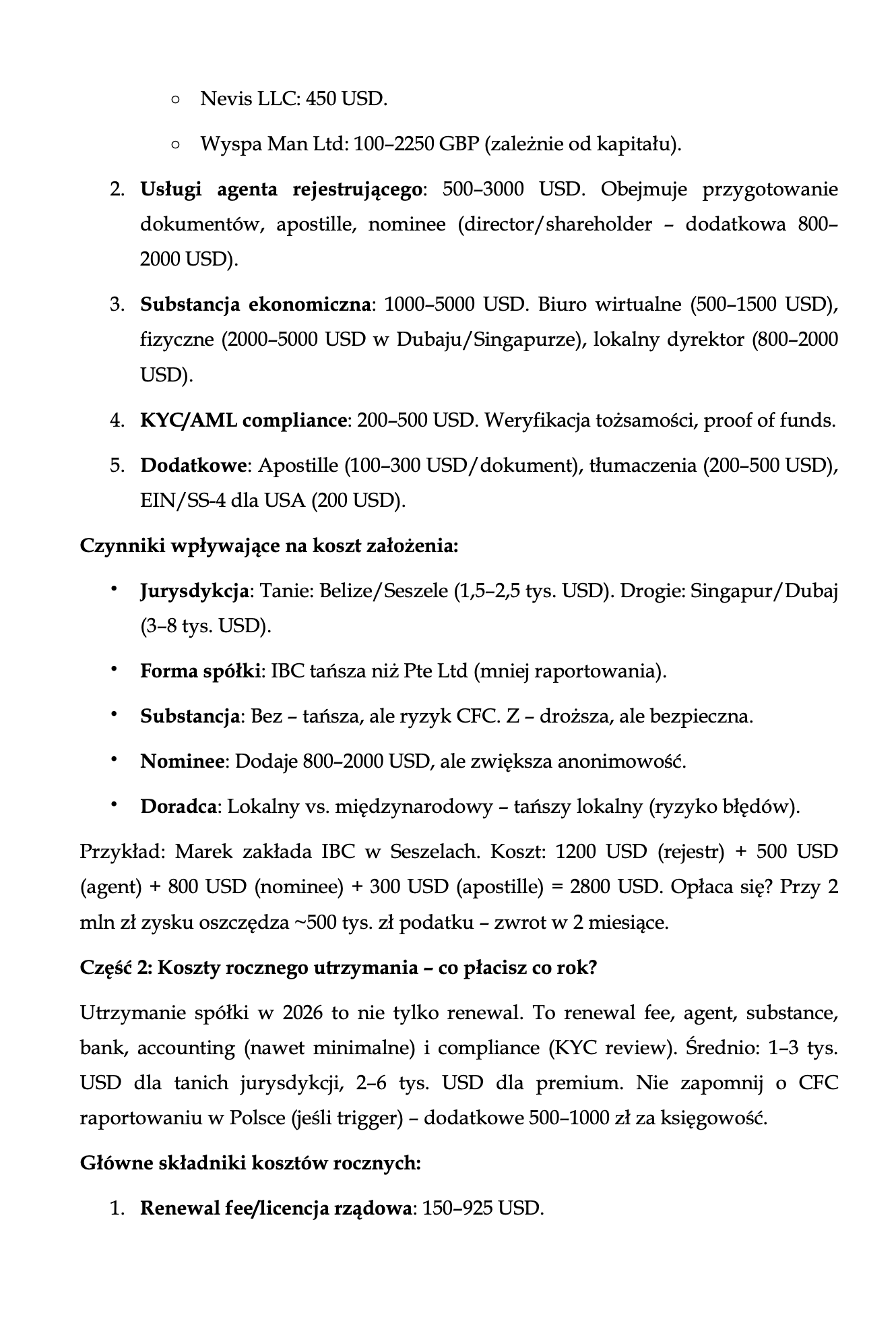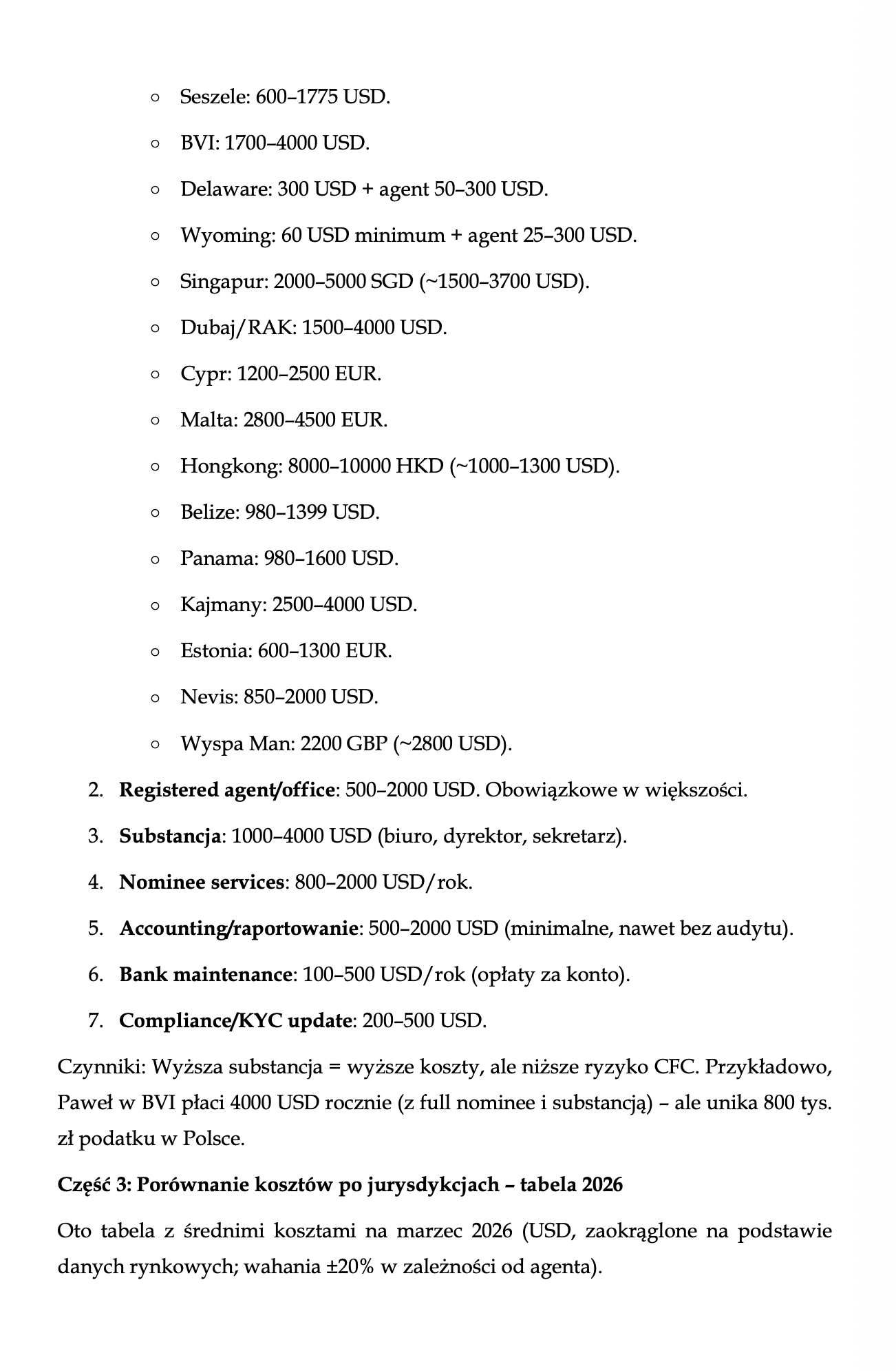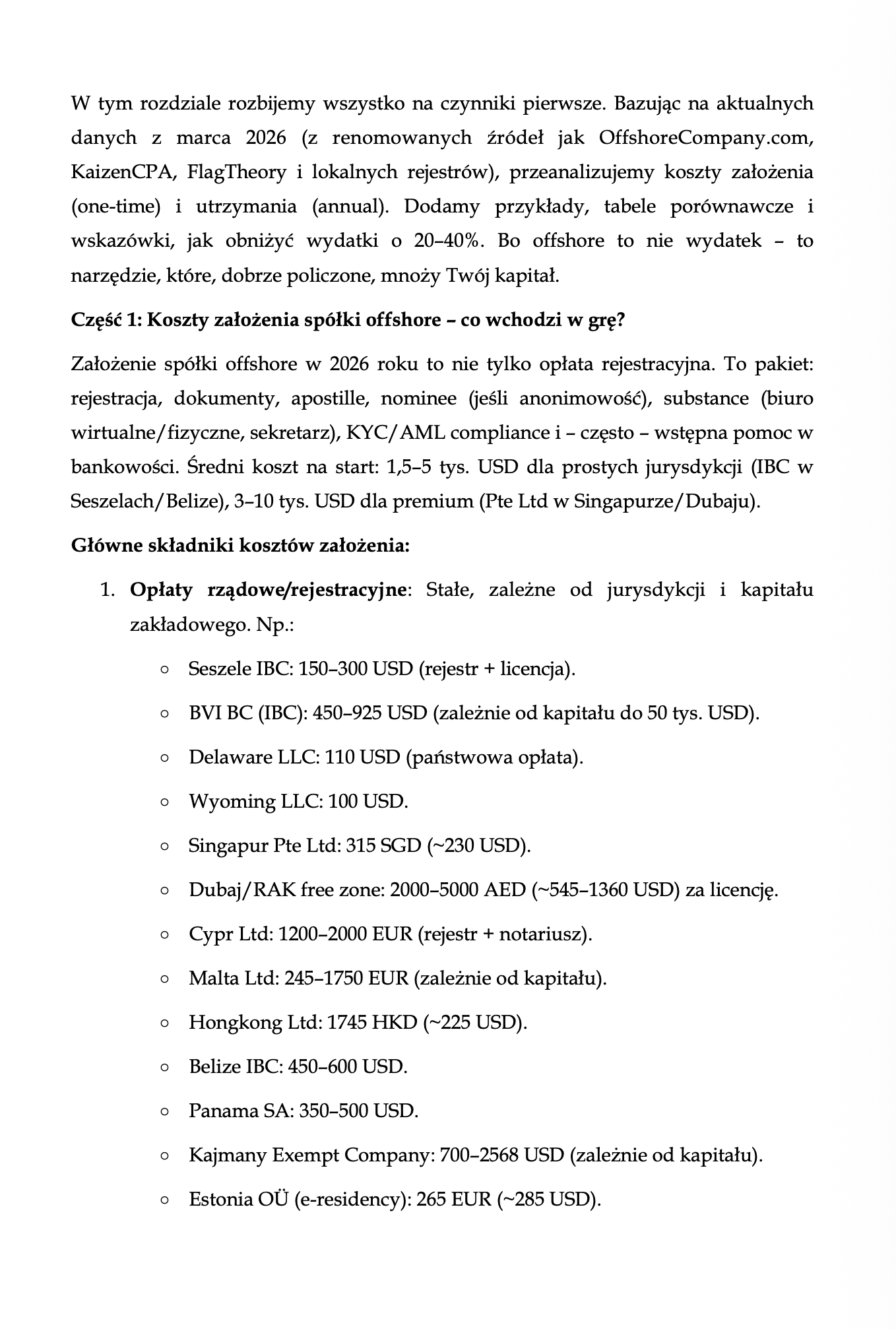 - Krok po kroku checklistę zakładania spółki offshore (z aktualnymi kosztami, dokumentami, apostille, KYC i AML)