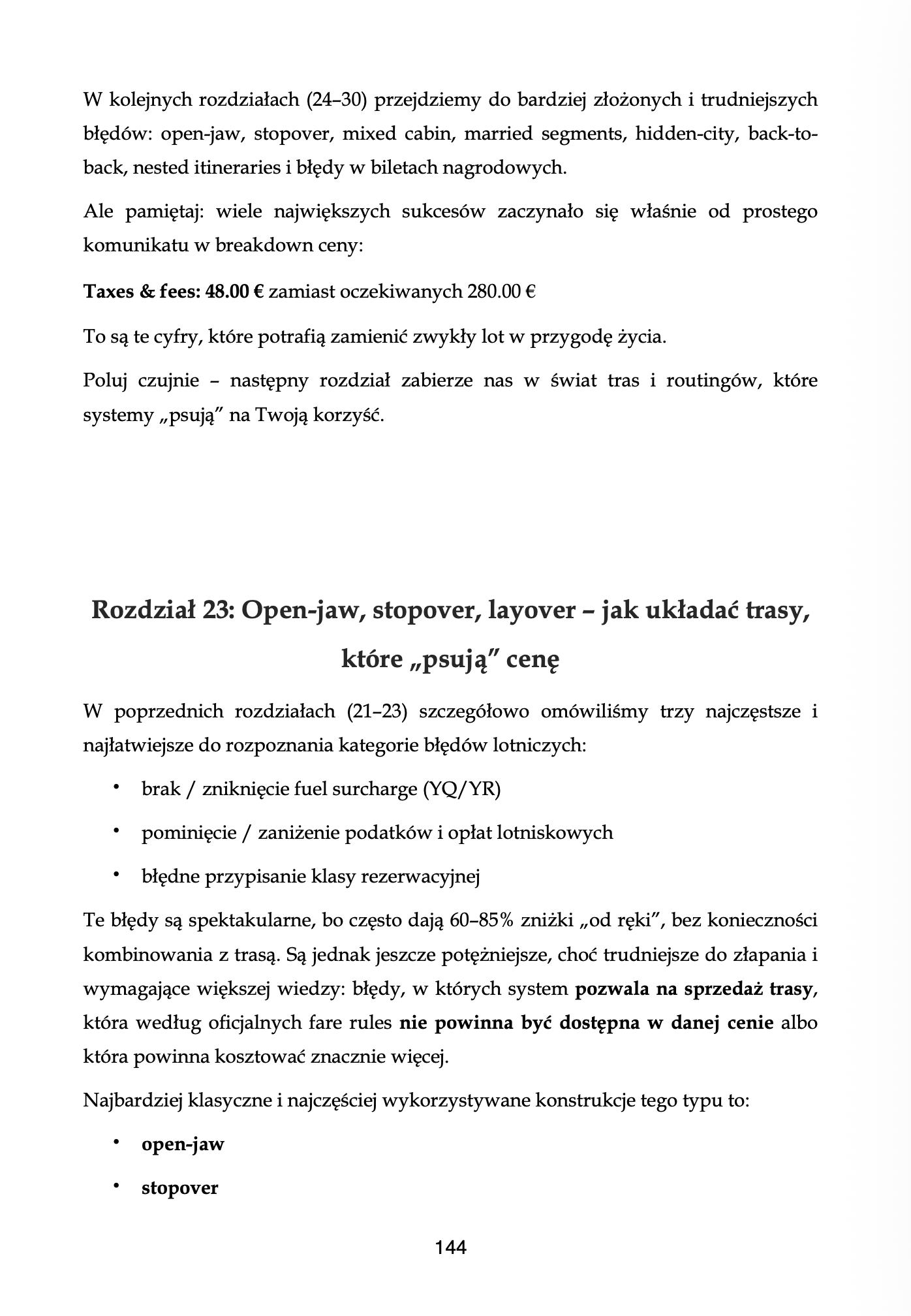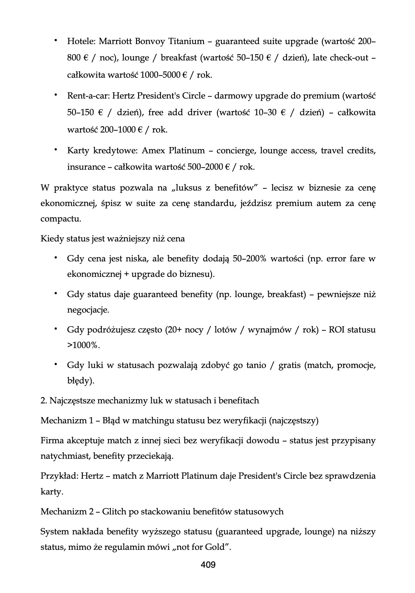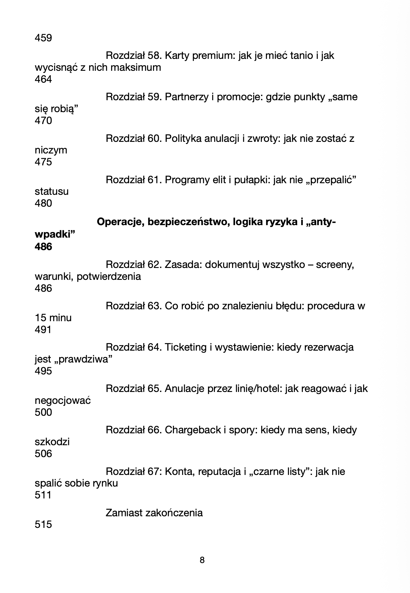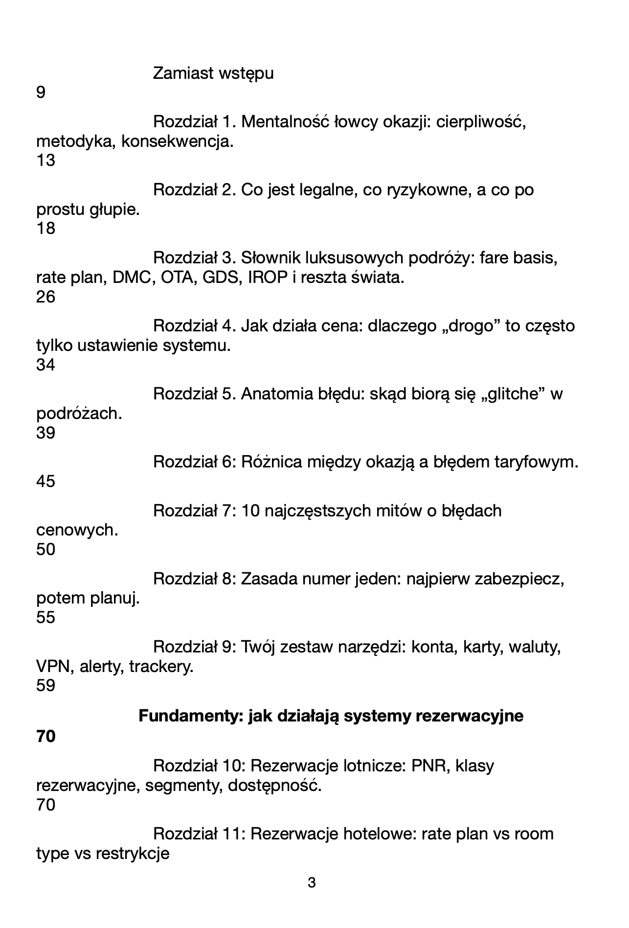 Niekoniecznie. I właśnie to pokazuje ta książka. Nie w formie pustych obietnic, bajek o „sekretnych trikach” ani internetowych legend, ale w formie konkretnego, rozbudowanego podręcznika, który odsłania mechanikę rynku podróży premium. Autor pokazuje, że luksus w praktyce bardzo często nie polega na wydawaniu większych pieniędzy, lecz na rozumieniu systemu lepiej niż inni. Bo w świecie lotów, hoteli, rejsów, statusów i programów lojalnościowych cena bardzo często nie jest odbiciem realnej wartości. Bywa skutkiem błędu, luki, złego mapowania taryfy, różnicy kursowej, źle połączonej promocji albo przewagi tych, którzy wiedzą, gdzie patrzeć i jak działać.