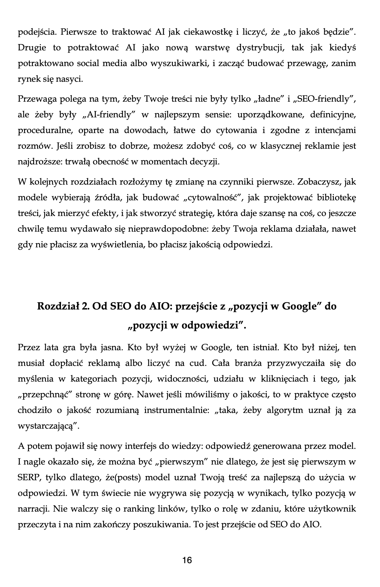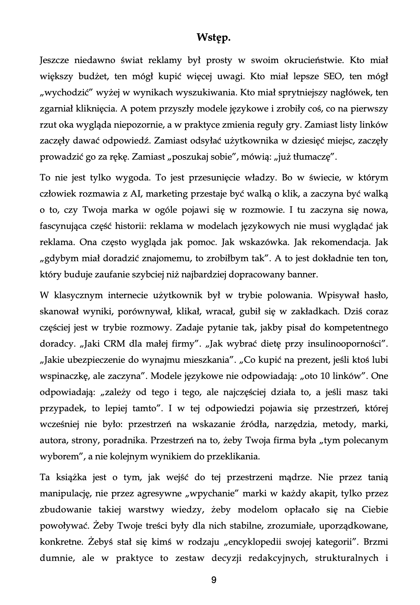 W świecie AI najlepszą reklamą jest najlepsza odpowiedź. Ta książka uczy, jak sprawić, by to Twoje treści stały się tą odpowiedzią.